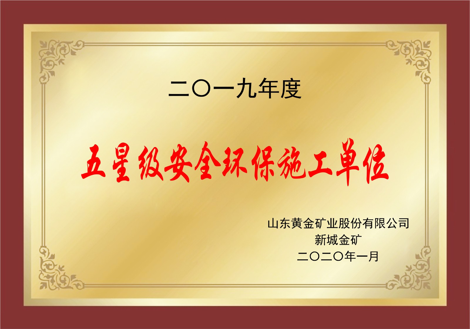 2019年度五星級安全環保施工單位